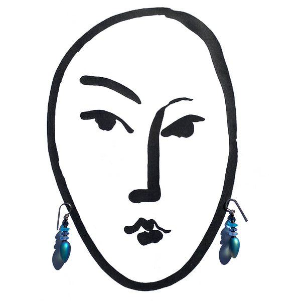 "TANGO 66" IRIDESCENT BLUE DANGLE EARRINGS
